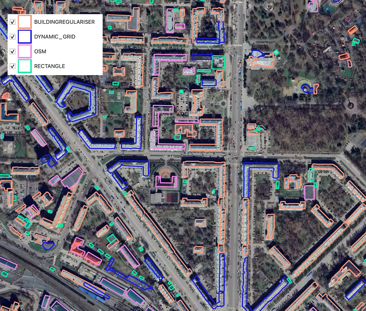 Btw, one can find the "simplification confidence score" in the building feature attributes --- usually, it's higher when it's the "dynamic_grid", because of the better shape approximation to the original pixel mask.